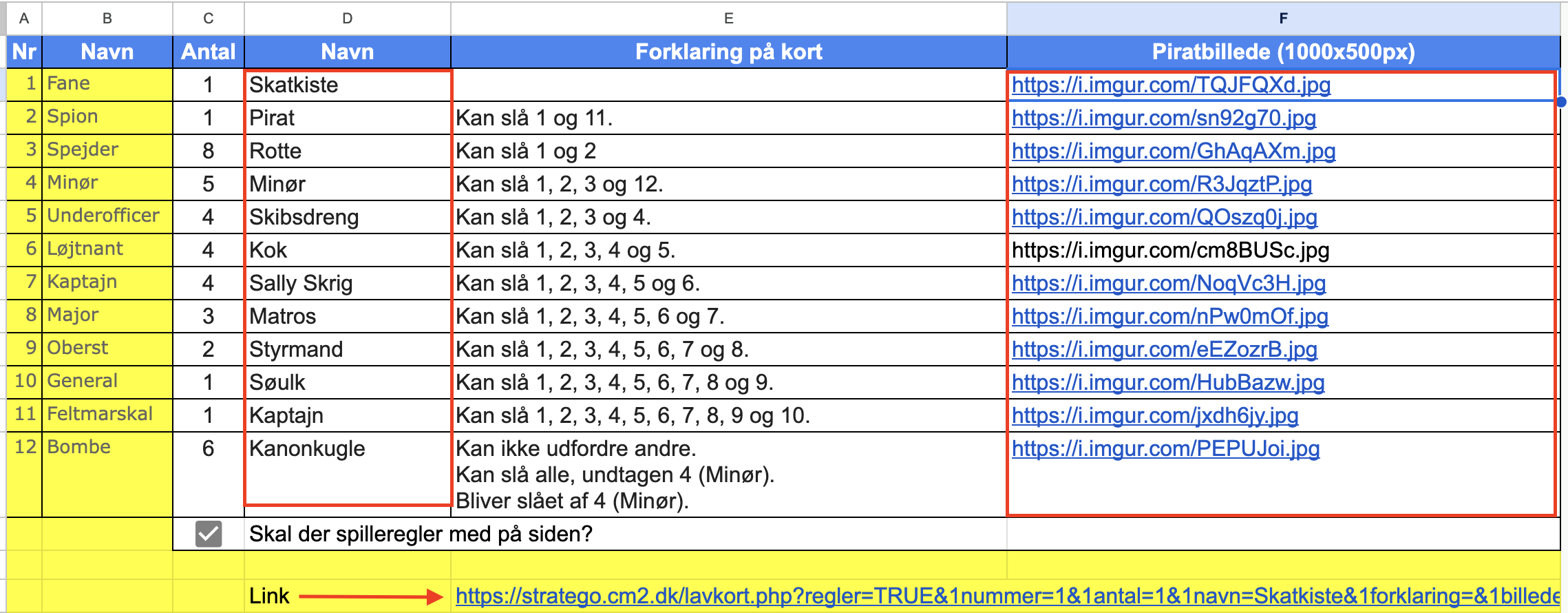 - Klik på linket nederst i regnearket, og dine kort vil blive lavet.
